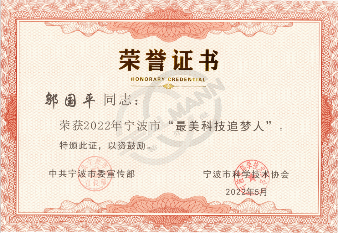 贺丨伏尔肯邬国平荣获2022年宁波市“最美科技追 2022-05-26