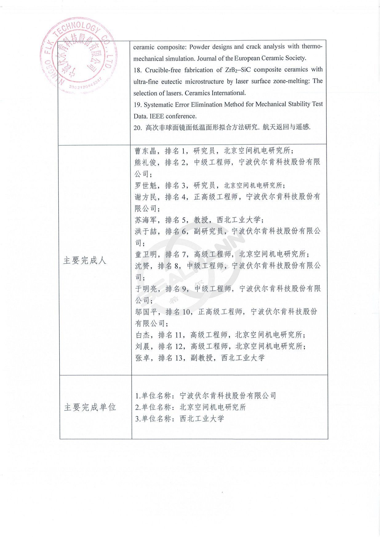 浙江省科学技术奖公示信息表