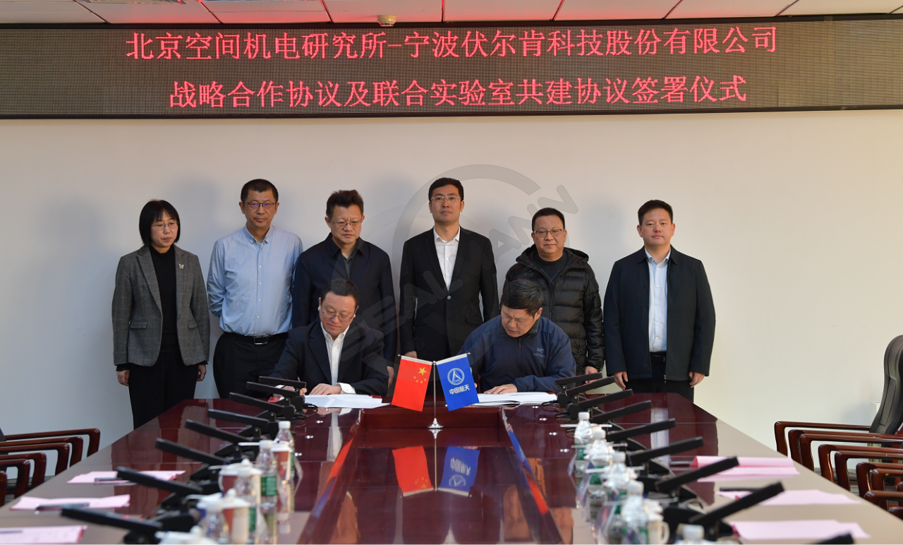 参观结束后,在北京空间机电研究所所领导及宁波市鄞州区领导们的共同见证下,北京空间机电研究所所长与球友会董事长签署了战略合作协议及联合实验室共建协议,并举行了联合实验室的揭牌仪式。