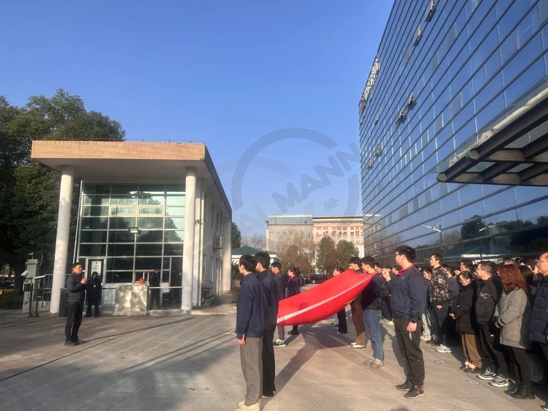 开工仪式在庄严的国歌声中拉开序幕,五星红旗在晨光中冉冉升起。伏尔肯全体员工整齐列队、身姿挺拔、神情庄重,面向国旗行注目礼,共同祈愿祖国繁荣昌盛、国泰民安。